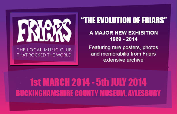 From March till July 2014 there will be a major new exhibition covering the evolution of Friars, from when it first launched in 1969 to present day, at the Buckinghamshire County Museum, (in Church Street, Aylesbury town centre). The exhibition will include 2D and 3D exhibits as well as audio and audio-visual material, plus a small cinema, which will feature Friars members and artists talking about their own personal memories about Friars. For all the latest news and information visit: www.AylesburyFriars.co.uk
